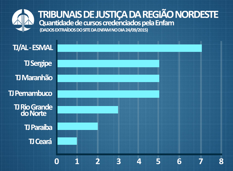 Escola da Magistratura de Alagoas (Esmal) está em quarto lugar no ranking de credenciamento de cursos, atrás do Distrito Federal, Pará e Rio de Janeiro