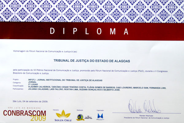 TJ recebe diploma pelo 3º lugar em prêmio nacional de Comunicação