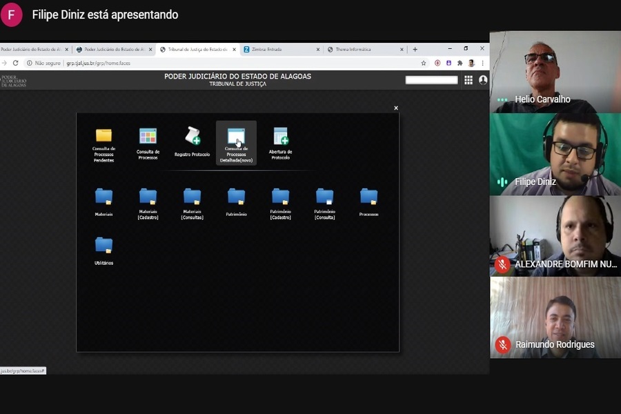 Otávio Praxedes, vice-presidente do TRE/AL, e Orlando Rocha, diretor da Escola Judiciária Eleitoral, interagem com público virtualmente em debate promovido pel