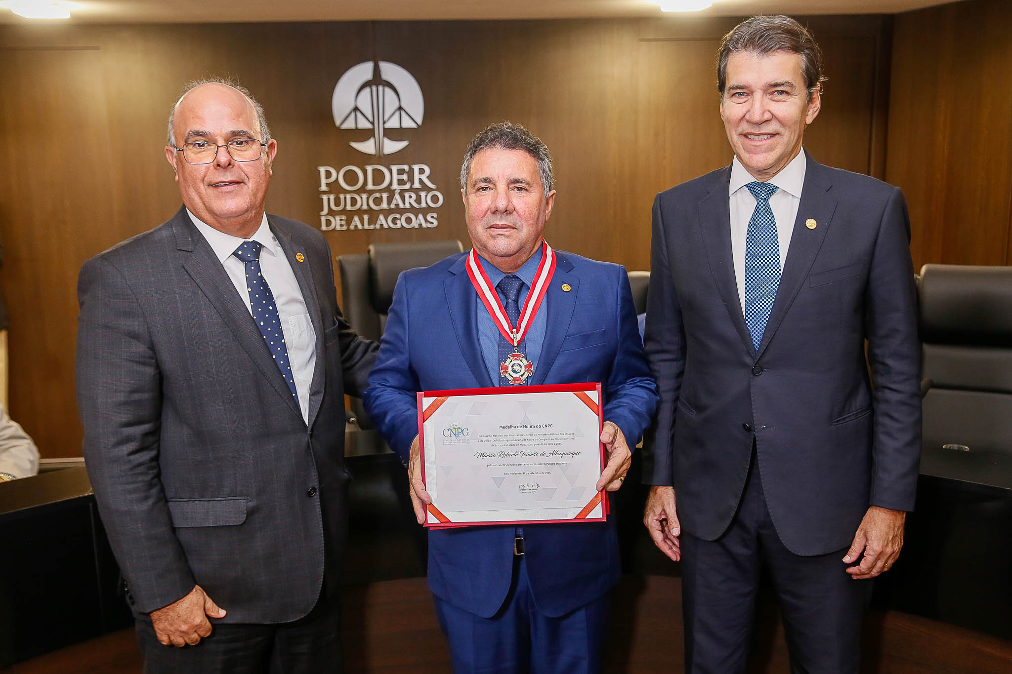 Medalha do Mérito foi entregue nesta terça (17); Márcio Roberto foi procurador-geral de Justiça de 2020 a 2024, antes de ser nomeado desembargador do TJAL