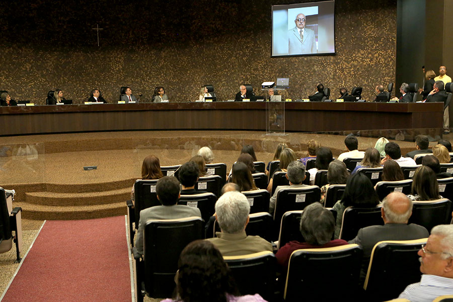 Durante a sessão, foi apresentado para os servidores um vídeo com depoimentos de amigos e familiares sobre a vida pessoal e profissional do desembargador, falec
