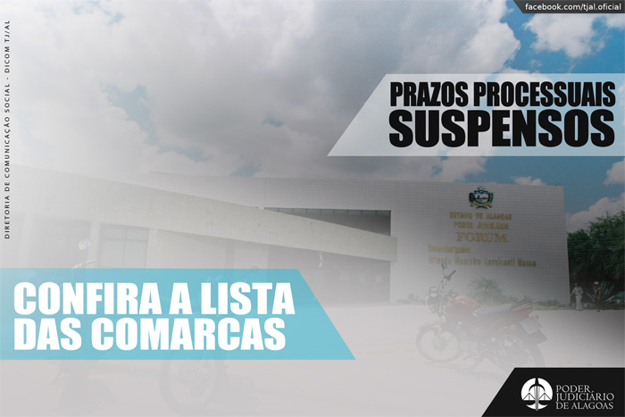 Prazos processuais suspensos em Quebrangulo e 14ª Vara Criminal da Capital