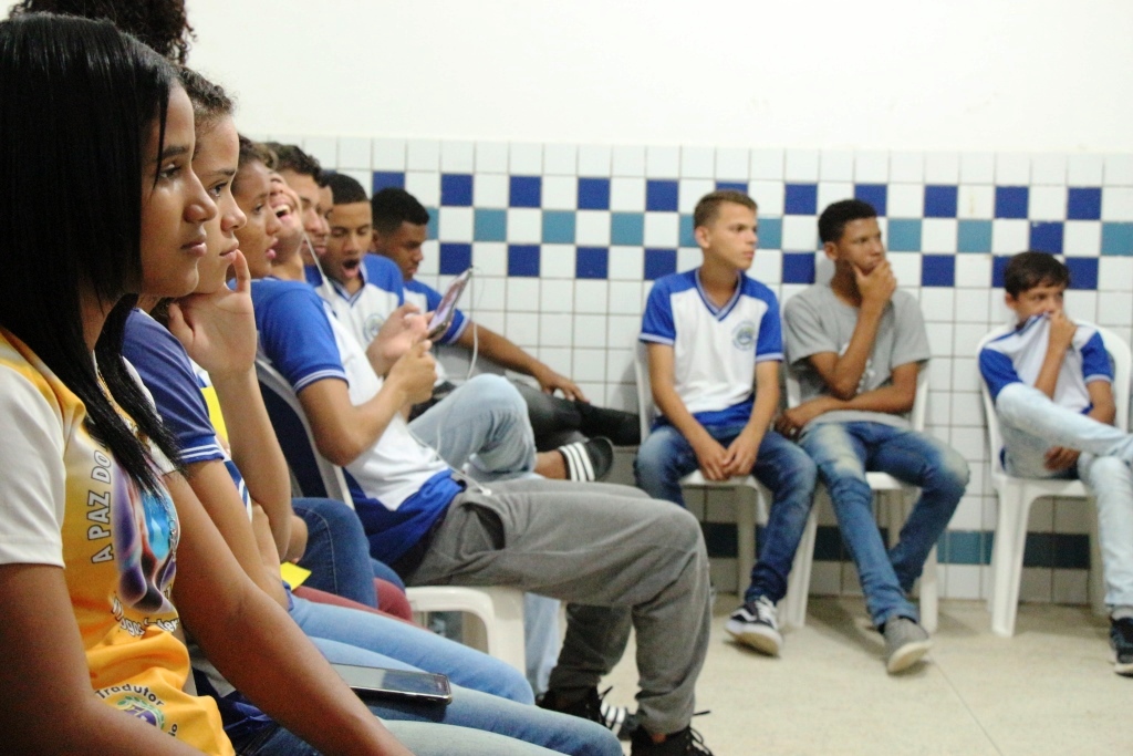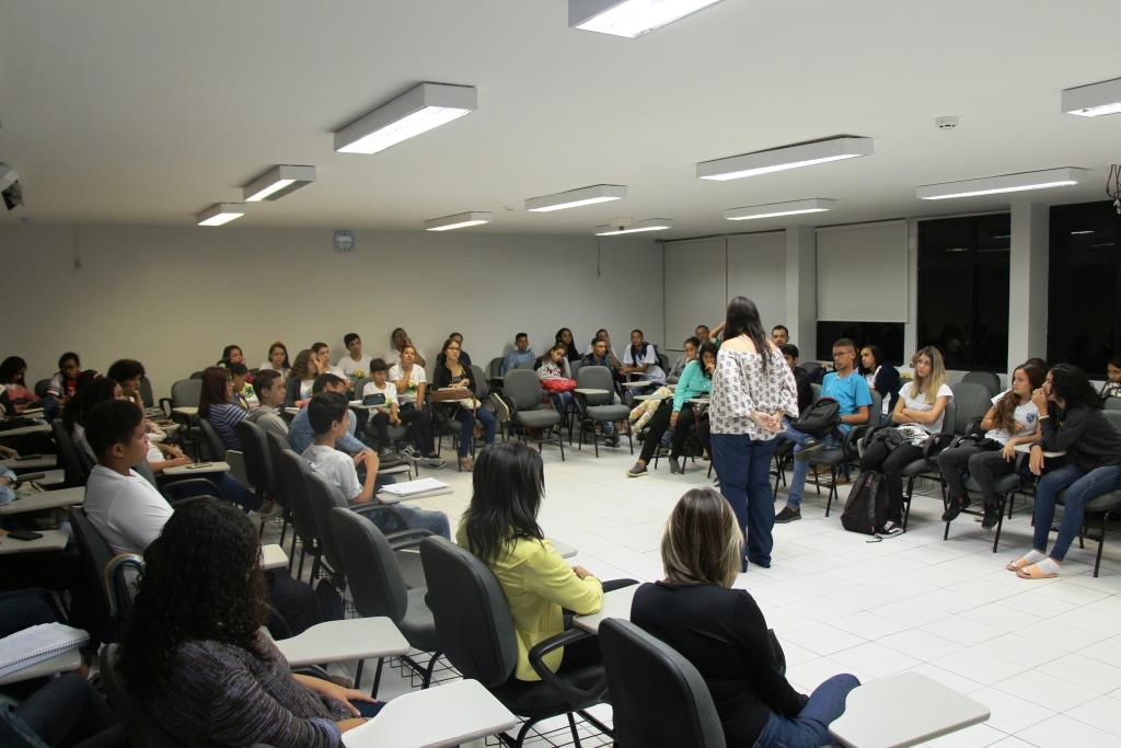 Estudantes assistiram à palestra ministrada pela escritora Maristela Pozitano; ação foi desenvolvida pelo Programa Cidadania e Justiça na Escola (PCJE)
