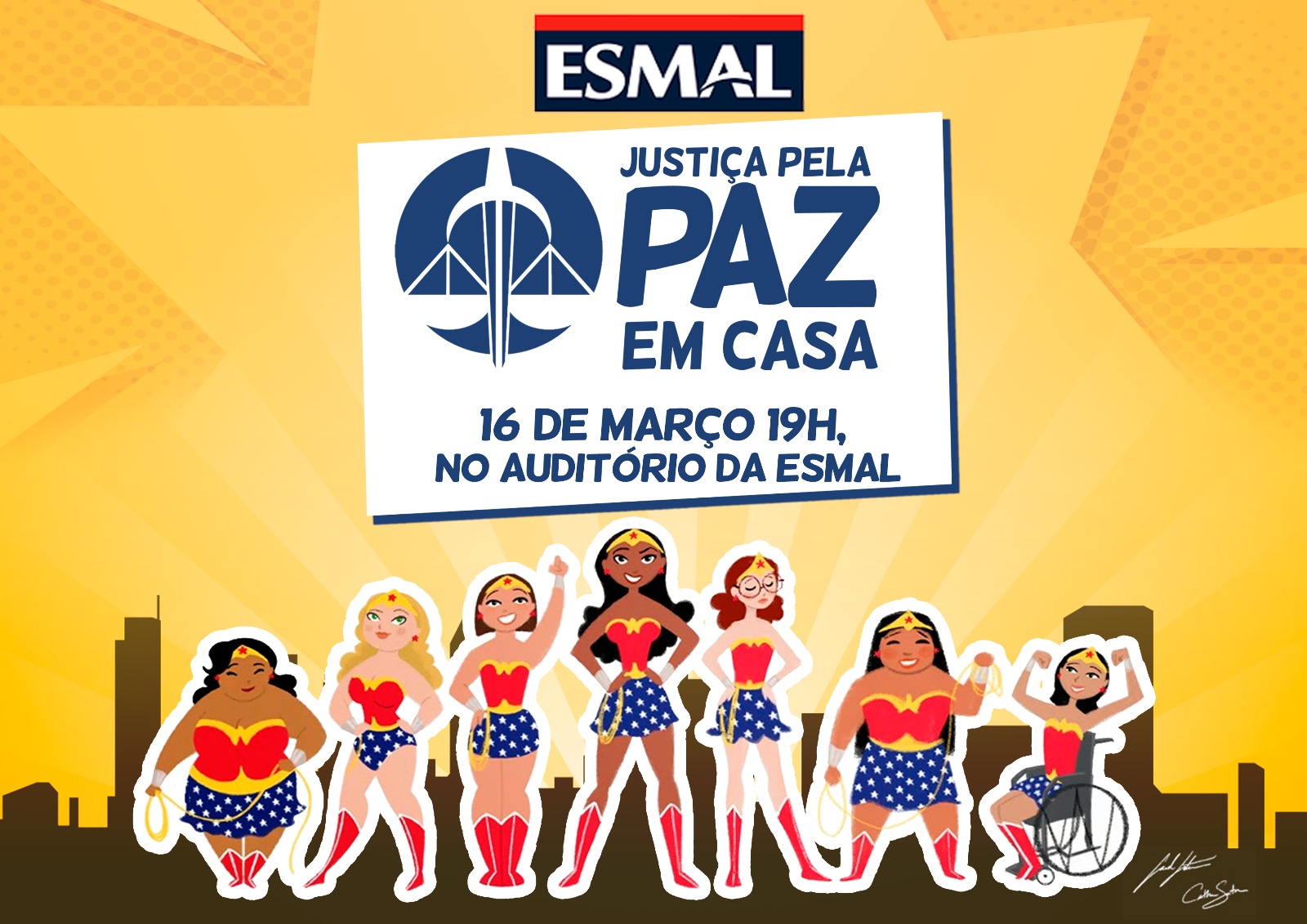 Evento acontece quinta-feira (16), às 19h, no auditório da Esmal; tema do encontro será Justiça pela paz em casa