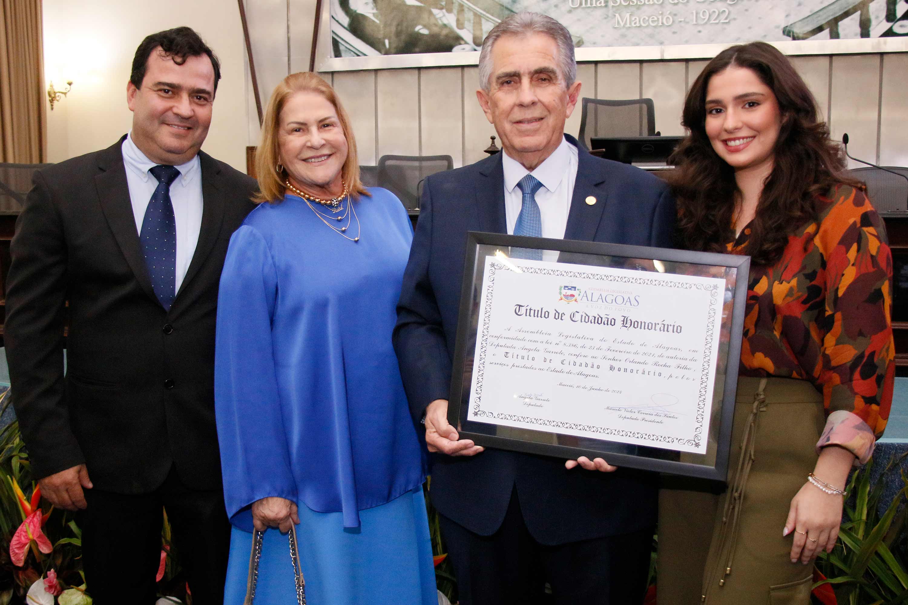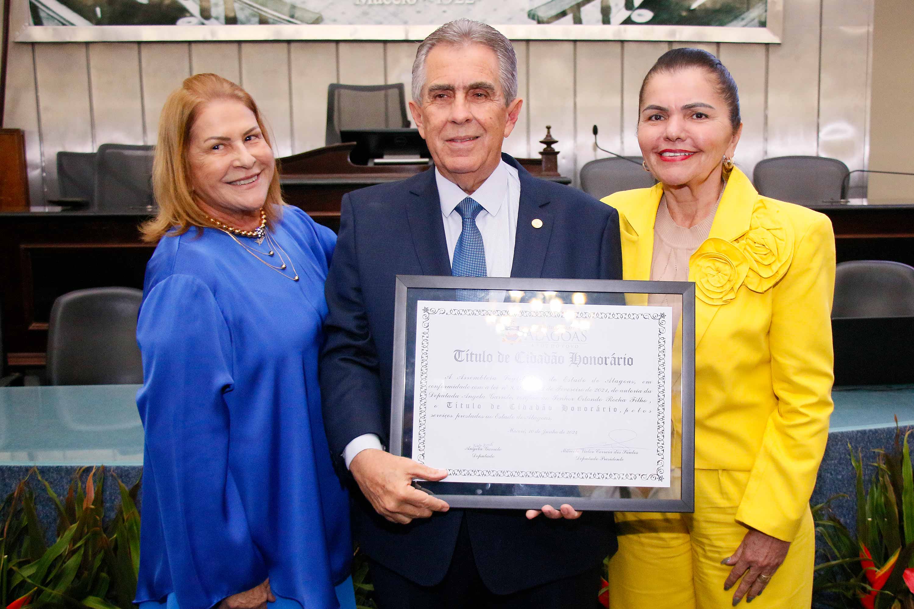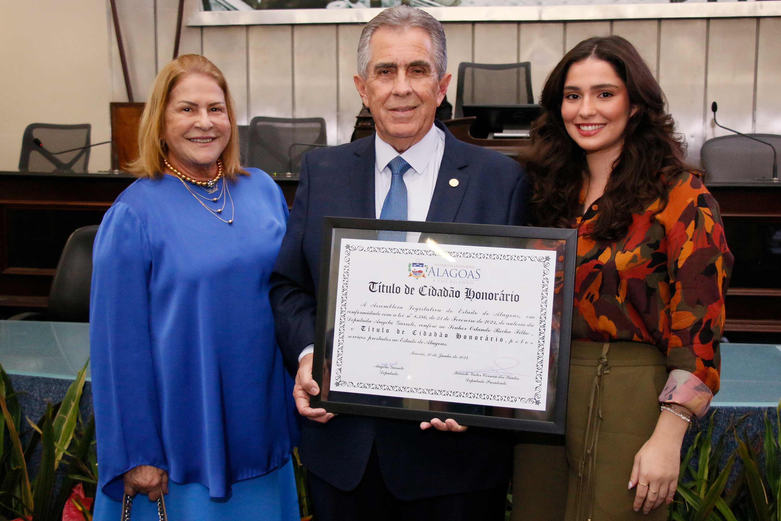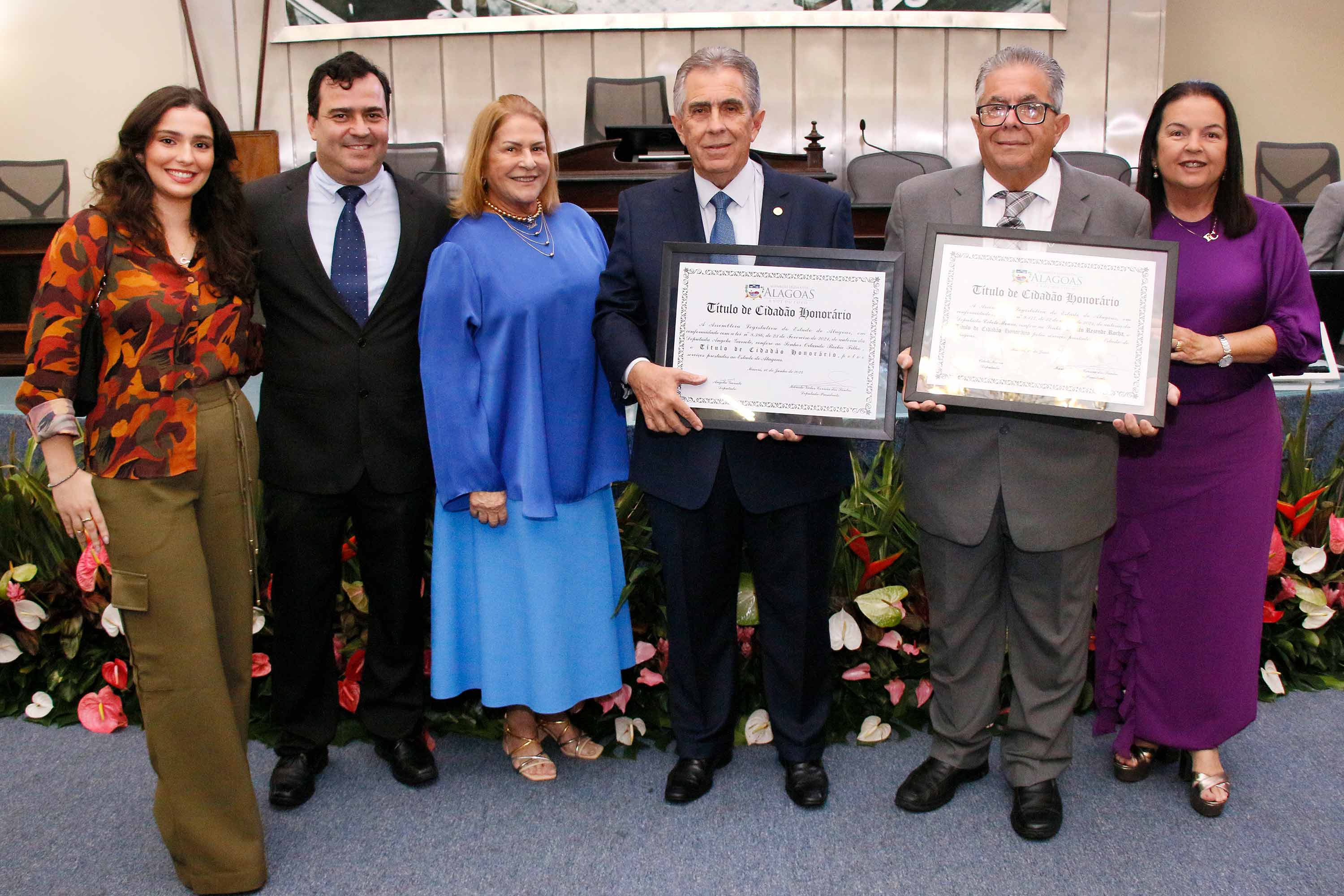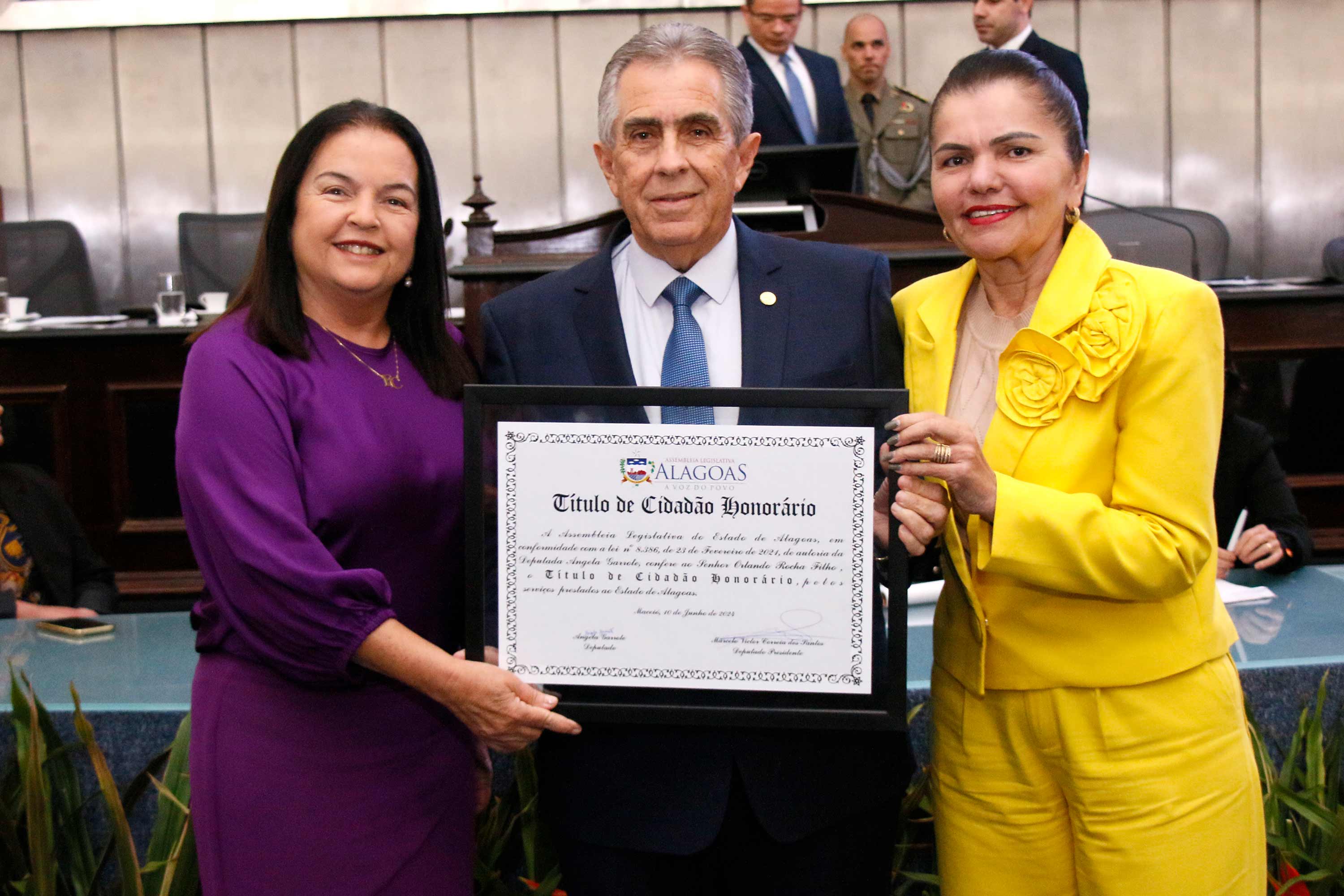 O desembargador Orlando Rocha Filho, vice-presidente do Tribunal de Justiça de Alagoas (TJAL), recebeu o título de cidadão honorário de Alagoas, nesta segunda (10), na Assembleia Legislativa do estado (ALE). Na ocasião, seu irmão, médico Renato Rezende Rocha, também foi homenageado.