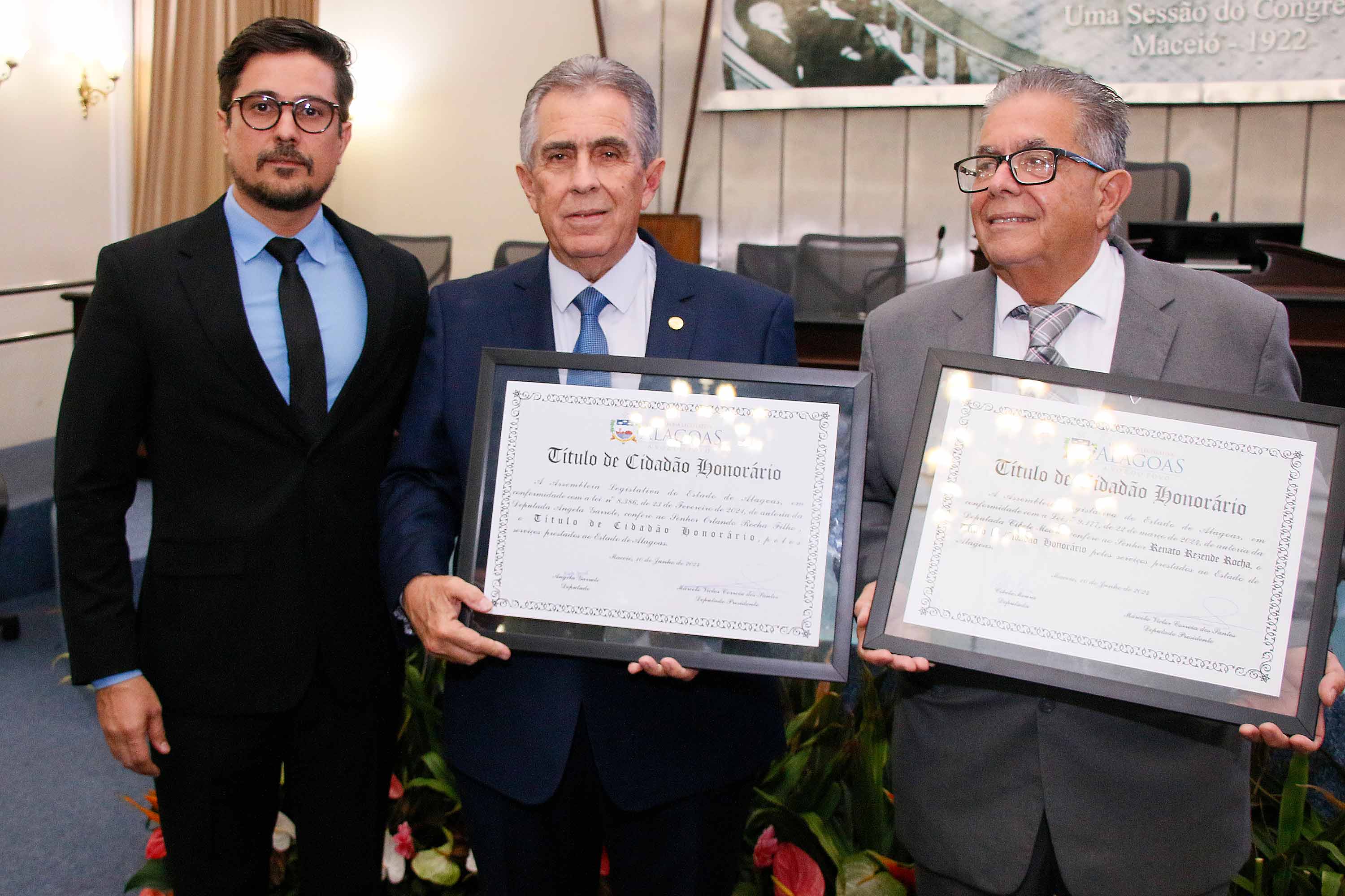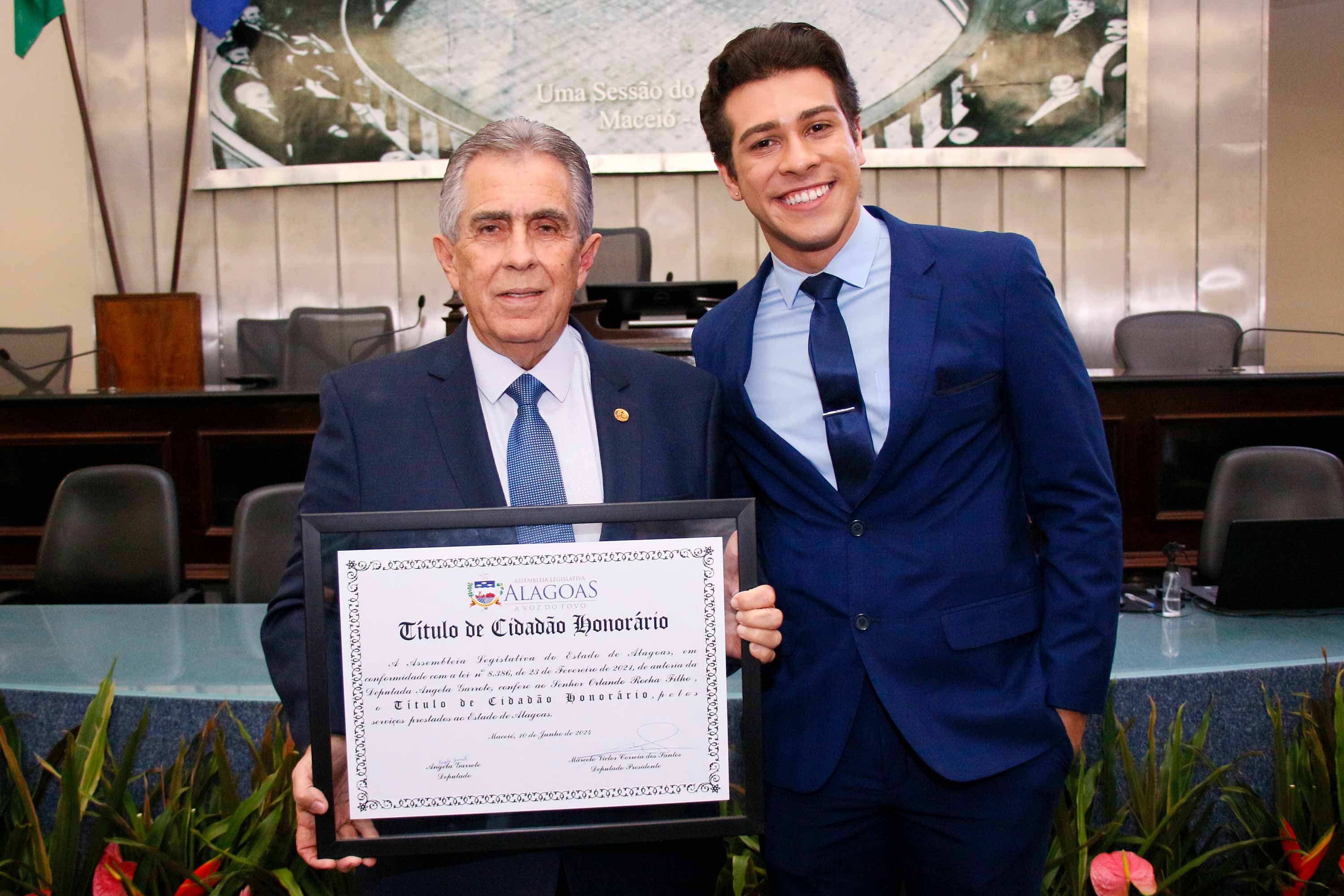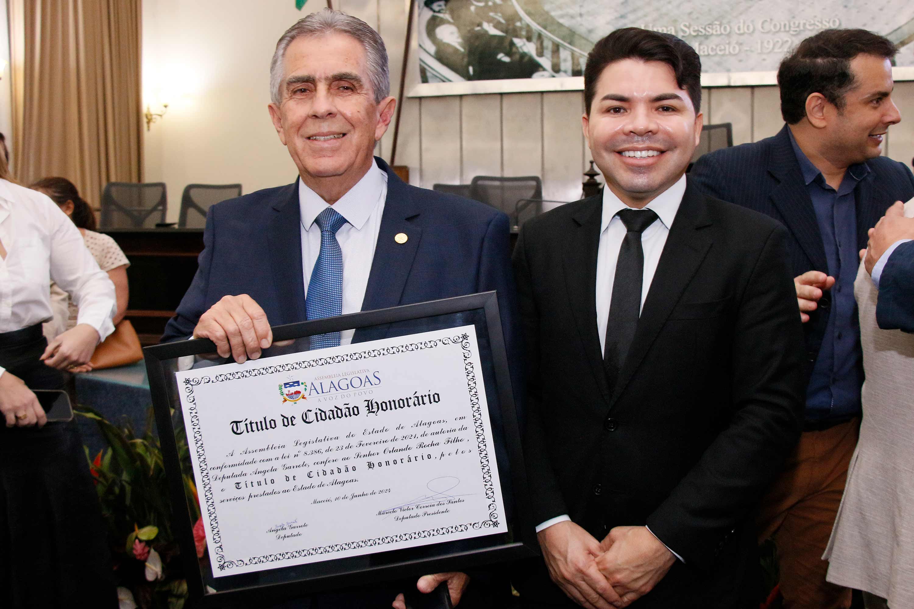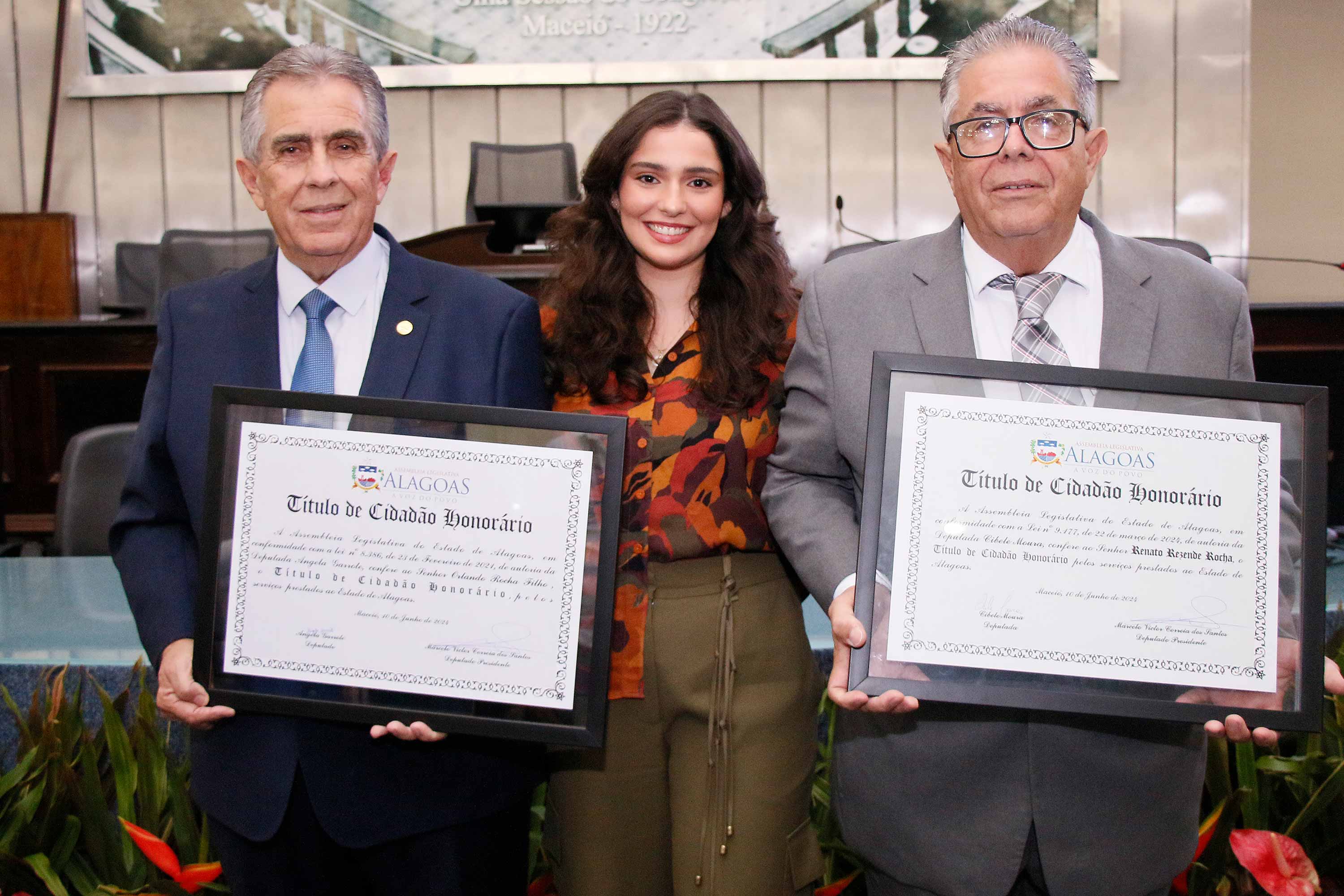 O deputado Marcelo Victor presidiu a sessão solene. Ele enalteceu a honra em reconhecer dois homens como Orlando e Renato pelos seus importantes serviços prestados a Alagoas. “Eles são homens que dedicaram a vida pra fazer o bem aos cidadãos alagoanos e agora concedemos sua certidão de nascimento para serem, de fato, alagoanos”, disse.
