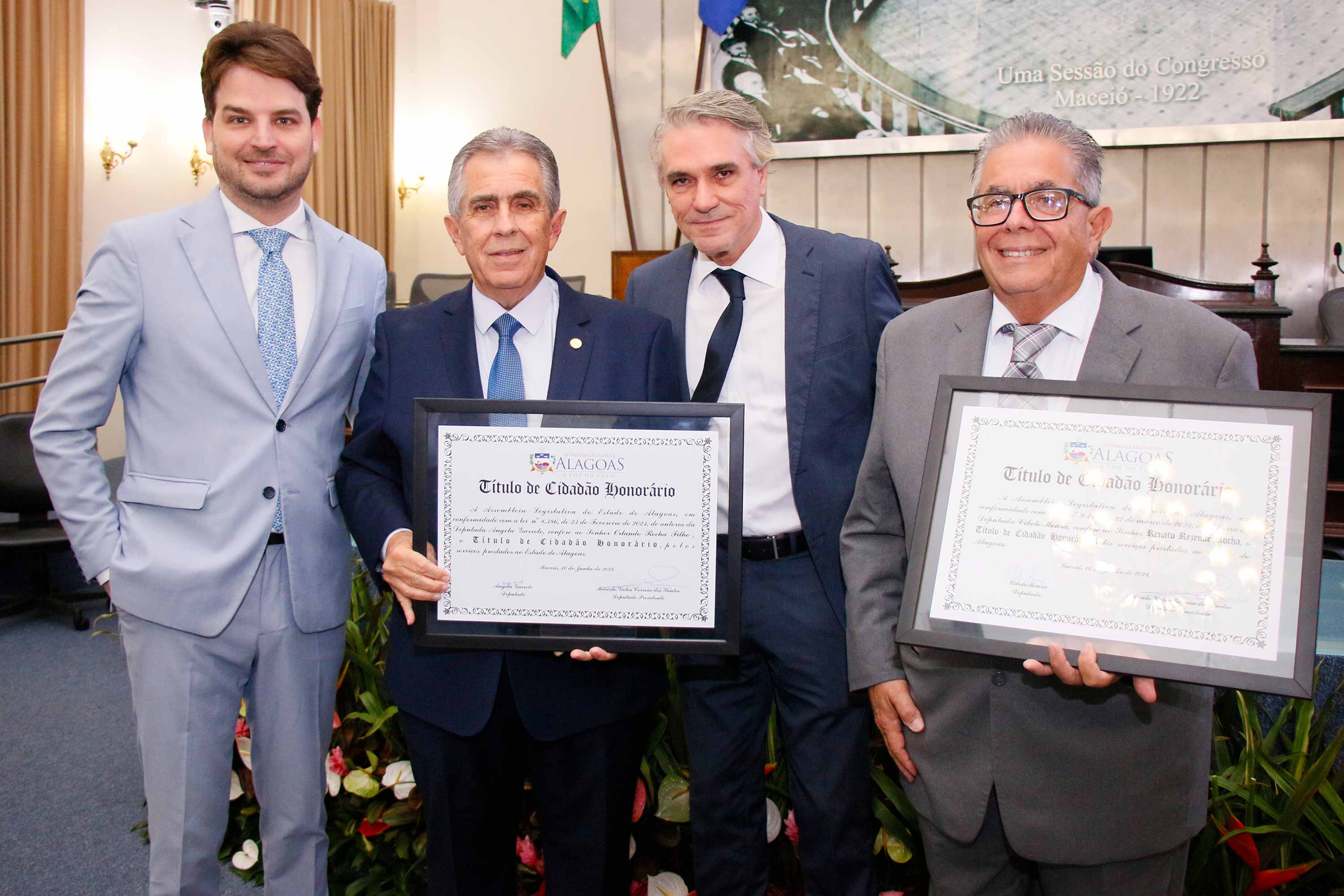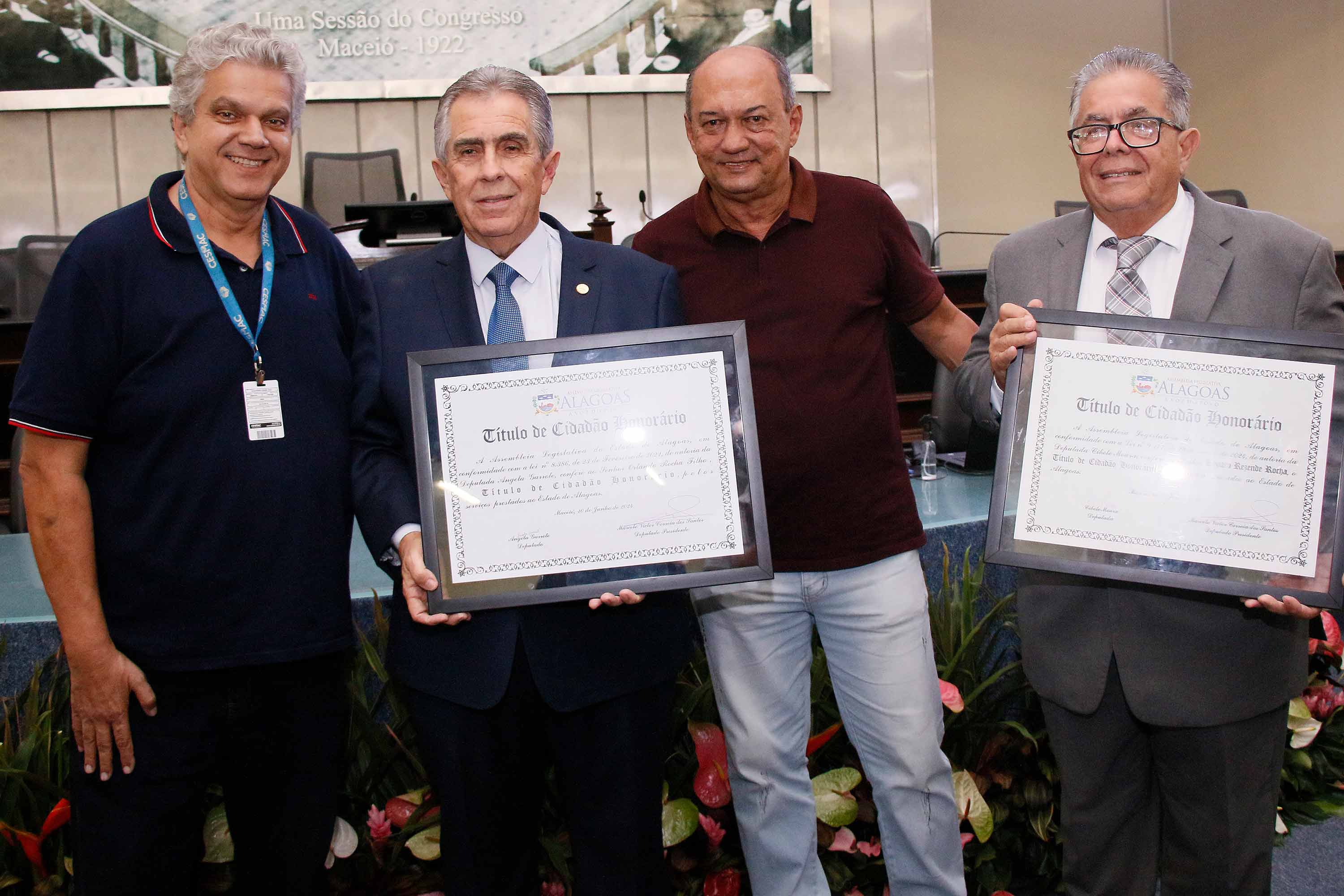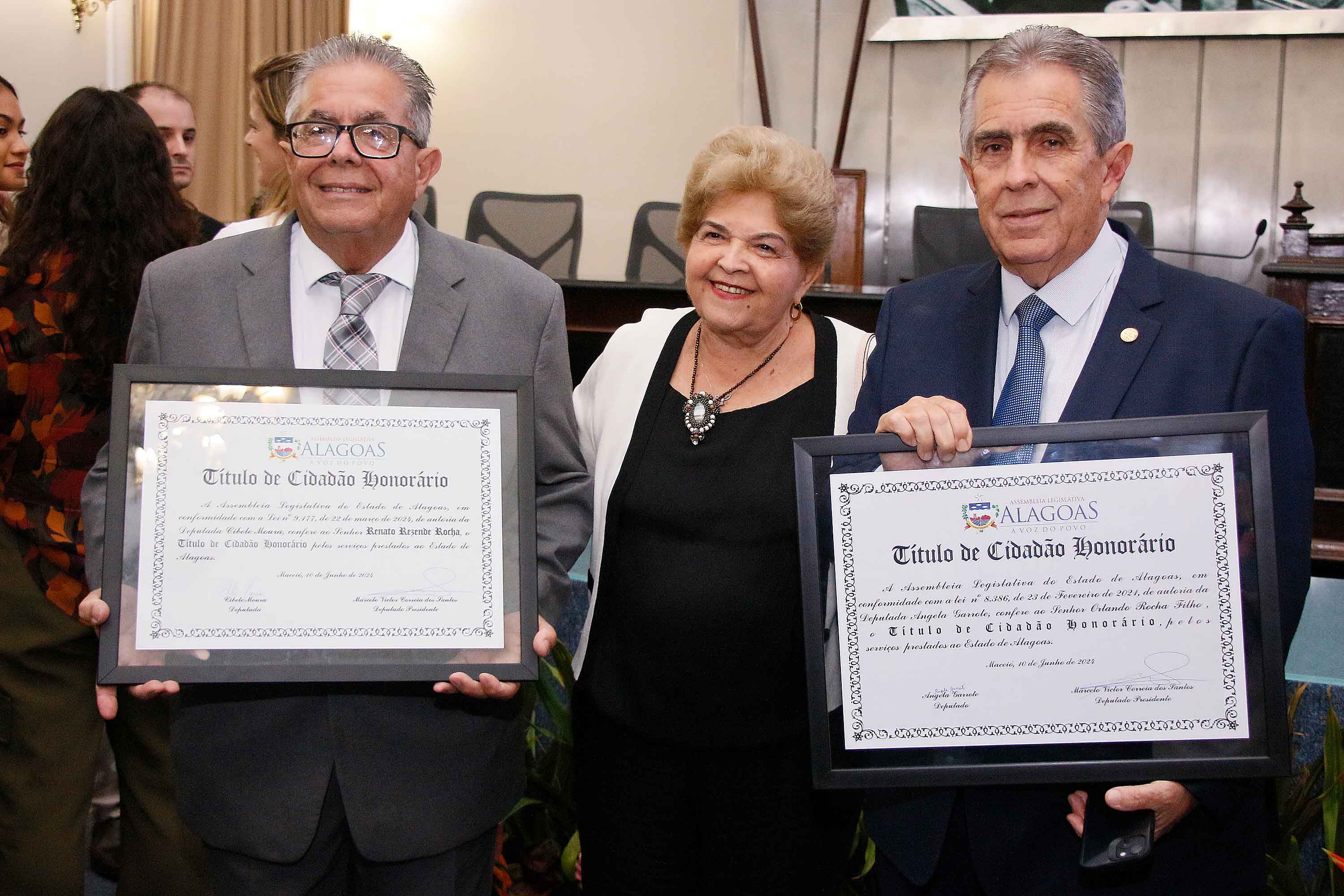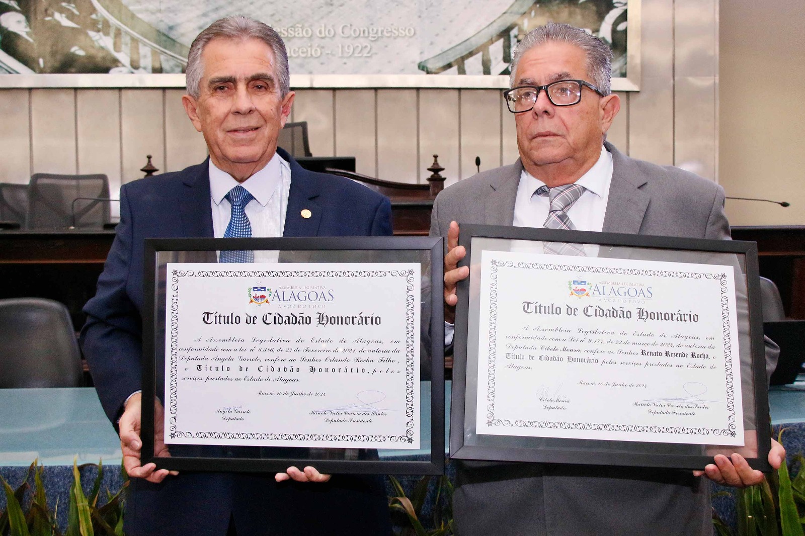 O deputado Marcelo Victor presidiu a sessão solene. Ele enalteceu a honra em reconhecer dois homens como Orlando e Renato pelos seus importantes serviços prestados a Alagoas. “Eles são homens que dedicaram a vida pra fazer o bem aos cidadãos alagoanos e agora concedemos sua certidão de nascimento para serem, de fato, alagoanos”, disse.