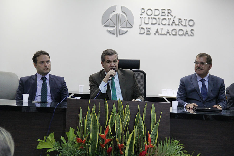 A solenidade foi acompanhada pelo governador Renan Filho e pelos desembargadores Fábio Bittencourt, Elisabeth Carvalho, Otávio Praxedes, Sebastião Costa Filho e Domingos de Araújo Lima Neto, além de juízes, promotores, advogados, servidores e representantes do Legislativo municipal.