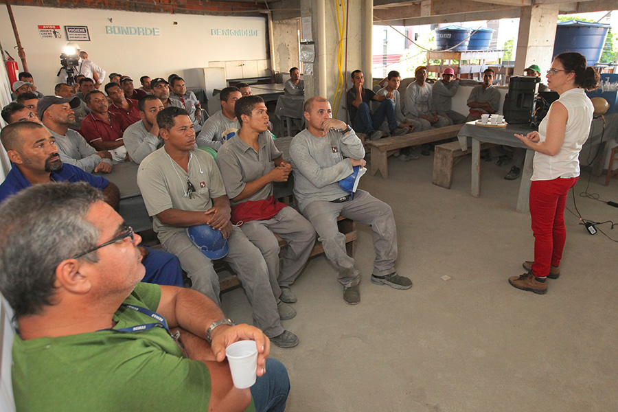 De acordo com a coordenadora do NPF, Ana Cláudia Acioli, esta foi a primeira ação de conscientização em um canteiro de obras. “O Núcleo sempre procura promover palestras em locais onde as pessoas precisam regularizar o registro de nascimento e abordamos a importância da paternidade no registro civil. Essa foi a primeira vez em que realizamos uma ação para trabalhadores da construção civil”, contou.