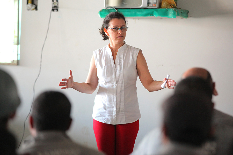 A assistente social do Núcleo, Márcia Cristina Carvalho, palestrou para mais de 50 trabalhadores. Foto: Itawi Albuquerque