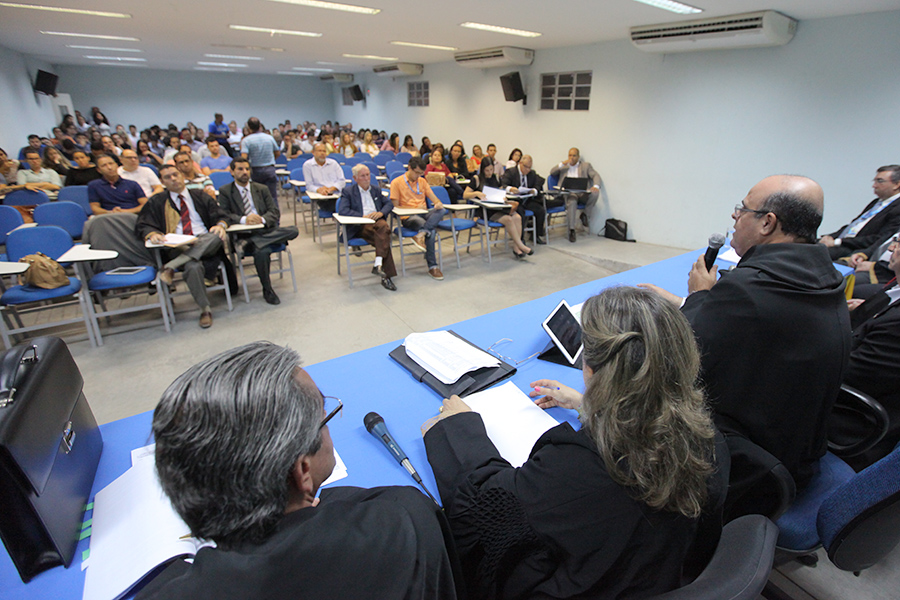 Os desembargadores Tutmés Airan de Albuquerque Melo e Fábio Bittencourt de Araújo integram o colegiado. O juiz Orlando Rocha Filho também participou da ação do Interagindo com a Comunidade Acadêmica.