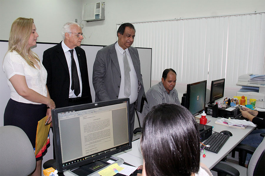 Além do Juizado da Fazenda Pública e do 8º JECC, já foram realizadas visitas ao 2º, 5º, 7º e 12º Juizados Especiais Cíveis e Criminais de Maceió. Acompanha o desembargador a assessora Valeska Emídio.