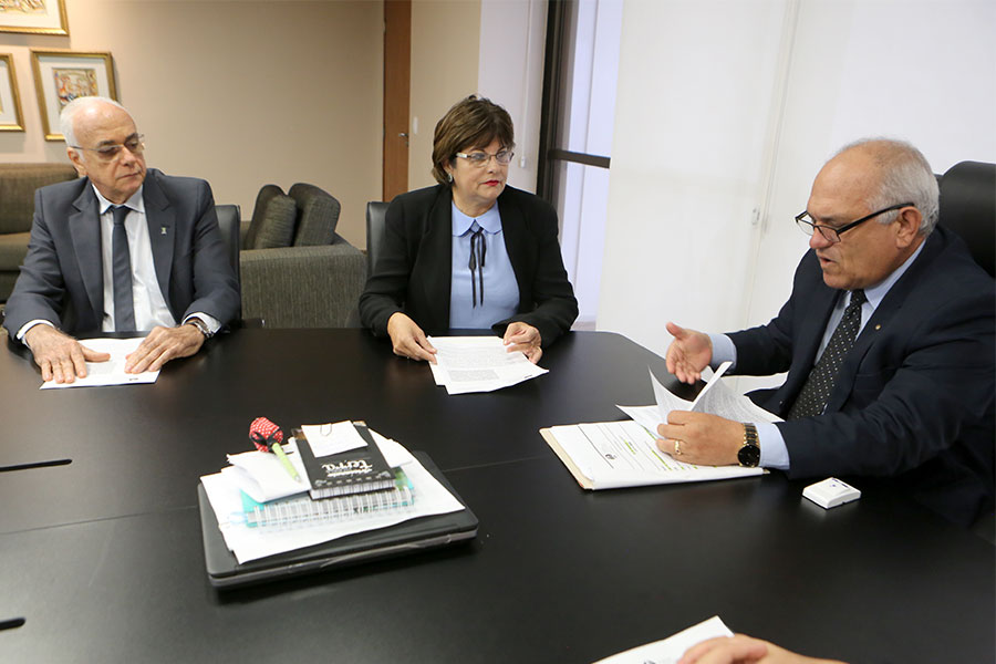 Secretária Cláudia Simões, presidente Otávio Praxedes e superintendente João Neto reuniram-se no gabinete da Presidência do TJ/AL. - Foto: Caio Loureiro (Dicom TJ/AL)