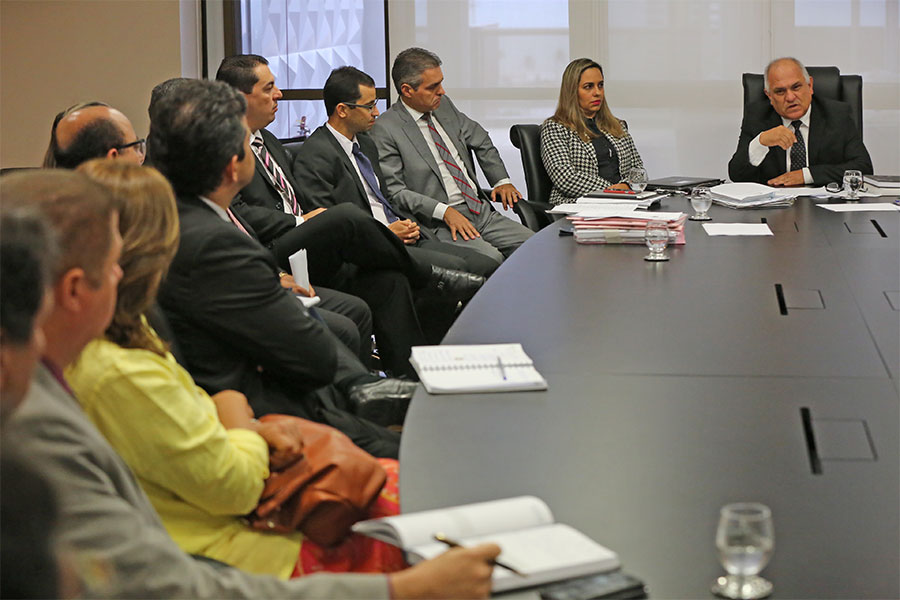 Meios para agilizar processos e solucionar demandas de interesse dos servidores e dos jurisdicionados foram discutidos em reunião com o presidente Otávio Praxedes e os integrantes do corpo diretivo da Corte estadual, no início da tarde desta quarta-feira (15).