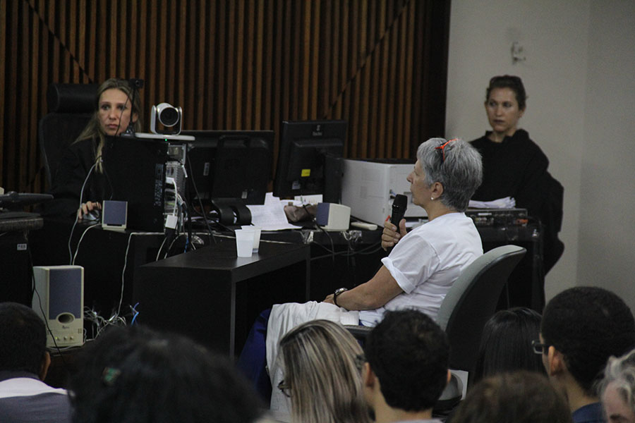 Rita Namé, viúva da vítima, depõe perante o Tribunal do Júri. Fotos: Isaac Neves.