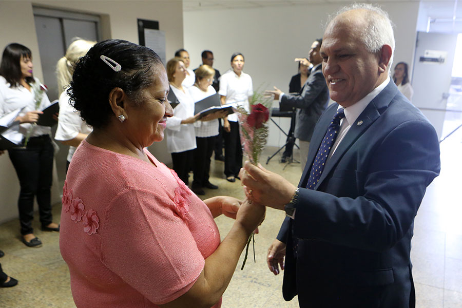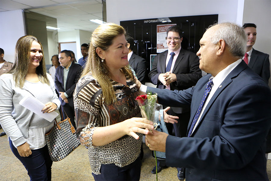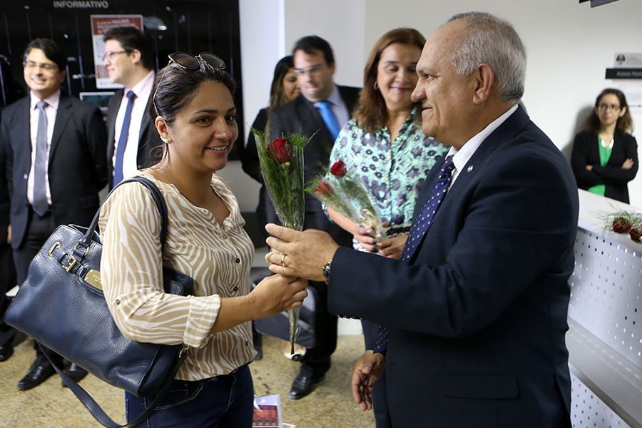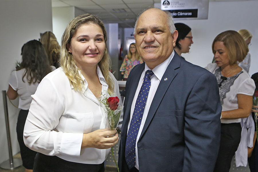 Além dela, dezenas de servidoras que atuam na sede do Judiciário de Alagoas, nos mais diversos setores, receberam do presidente rosas vermelhas. A solenidade, organizada pela Secretaria Especial da Presidência com apoio de outras diretorias da Corte estadual, foi realizada no hall do TJ, no início do expediente, às 7h30.