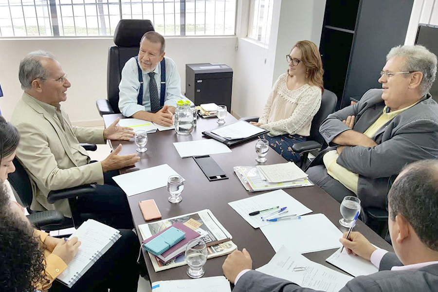 Os magistrados Alberto Almeida, da 1ª Vara Criminal/Infância de Arapiraca e Laila Kerckhoff dos Santos, auxiliar da Corregedoria, o secretário da CEIJ, José Hamilton Ramos de Azevedo, e os membros da equipe multidisciplinar da Coordenadoria, as assistentes sociais Milena Ferro de Amorim e Elisângela Ferreira da Silva e a psicóloga Camila Loiola Santos, também participaram das discussões sobre a parceria.