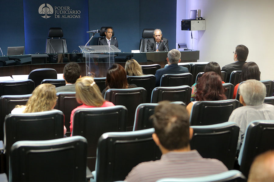 Vítor José Rodrigues ministra palestra em auditório no TJ/AL. Fotos: Caio Loureiro.