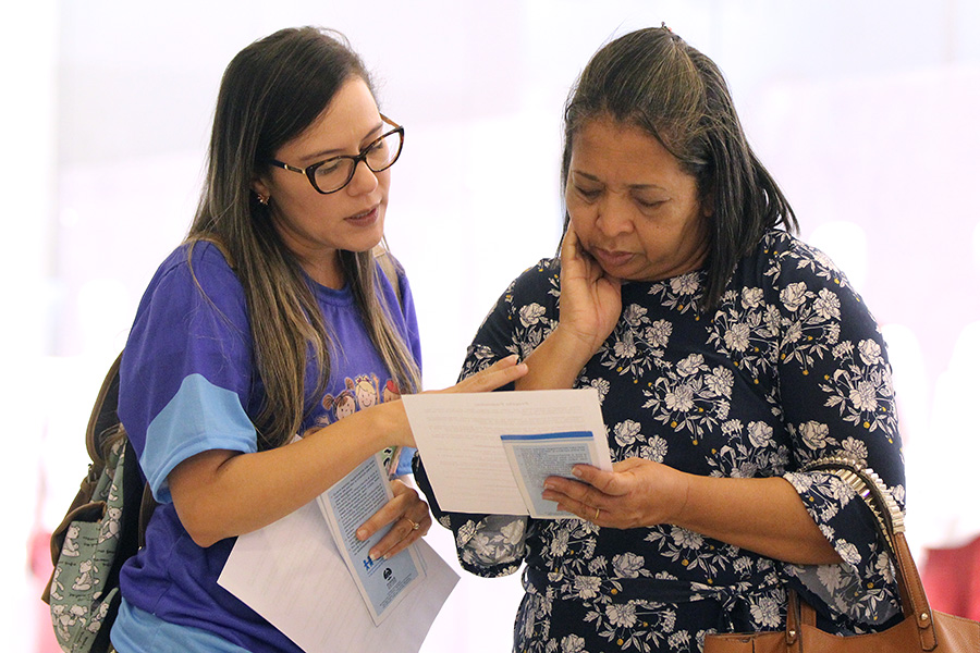 A aposentada Eliane Valério, de 56 anos, soube da ação por uma amiga e foi uma das primeiras a chegar no local. Ela conversou com a psicóloga Fátima Malta, integrante da equipe multidisciplinar da Vara, e contou que sempre teve interesse em adotar, mas seu ex-companheiro não queria.