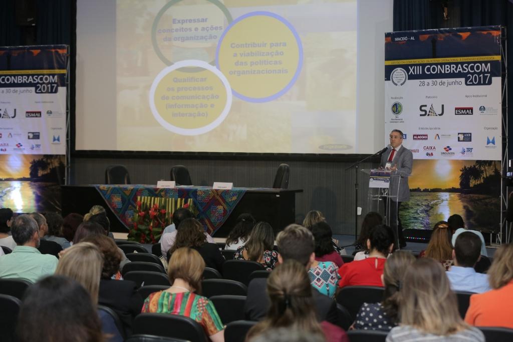 Autor de referência nas áreas de assessoria de imprensa e relacionamento com a mídia, o pesquisador Jorge Duarte foi, nesta quinta-feira (29), o primeiro convidado a ministrar palestra no XIII Congresso Brasileiro de Assessores de Comunicação da Justiça (Conbrascom 2017), que acontece na sede da Escola Superior da Magistratura de Alagoas (Esmal). Na ocasião, o jornalista, relações-públicas e doutor em Comunicação falou sobre como os profissionais das assessorias podem tomar parte como agentes estratégicos nas organizações onde atuam.