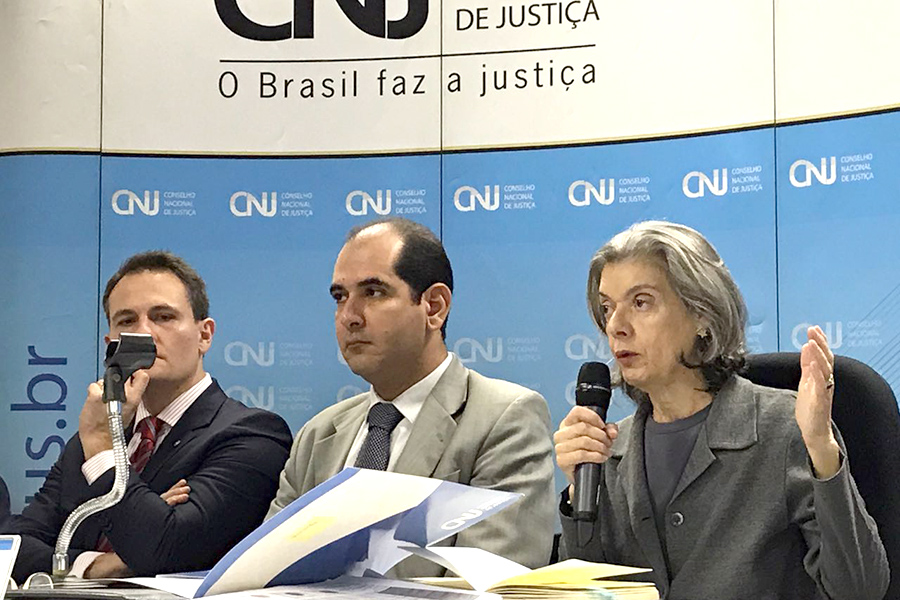 O desembargador Celyrio Adamastor Tenório Accioly, vice-presidente do Tribunal de Justiça de Alagoas (TJ/AL) e supervisor do Grupo de Monitoramento e Fiscalização do Sistema Carcerário (GMF/AL), esteve reunido, nesta quarta-feira (12), com a ministra Cármen Lúcia, presidente do Conselho Nacional de Justiça (CNJ), para tratar sobre a implantação do sistema Banco Nacional de Monitoramento das Prisões (BNMP).