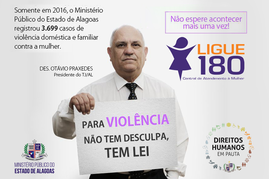 O presidente do Tribunal de Justiça de Alagoas (TJ/AL), Otávio Leão Praxedes, recebeu hoje a Diretoria de Comunicação do Ministério Público Estadual, e deu sua contribuição para a campanha Agosto Lilás, promovida pelo órgão ministerial. O desembargador foi fotografado para a elaboração de peça publicitária integrante da ação, que visa chamar atenção da sociedade para a violência contra a mulher.