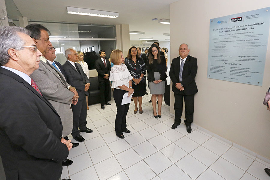 Quatro meses após terem sido nomeados, os 12 novos juízes aprovados no último concurso público do Tribunal de Justiça de Alagoas (TJ/AL) concluíram o curso de formação inicial para ingresso na magistratura. A solenidade de encerramento da formação aconteceu nesta terça-feira (8), na sede da Escola Superior da Magistratura de Alagoas (Esmal). Na ocasião, foi descerrada a placa da turma e os novos juízes foram parabenizados pelo presidente do TJ/AL, Otávio Leão Praxedes; pelo corregedor-geral, Paulo Barros da Silva Lima, e pelo diretor-geral da Esmal, Fernando Tourinho de Omena Souza.