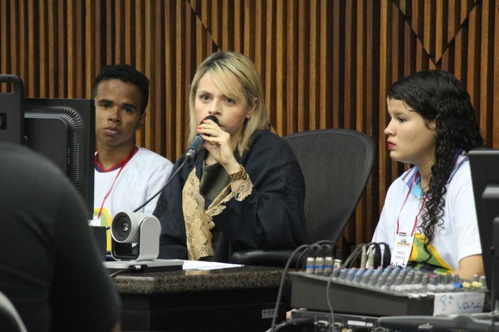 Juíza Lorena Carla Sotto-Mayor mostrou para os estudantes como funciona um júri real. Foto: Rebecca Bastos