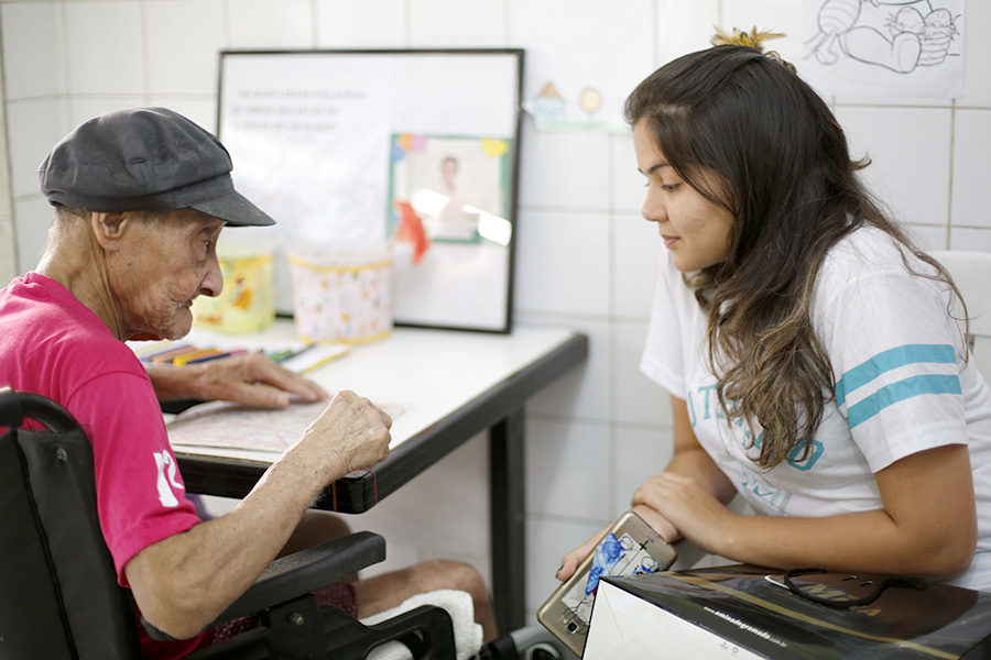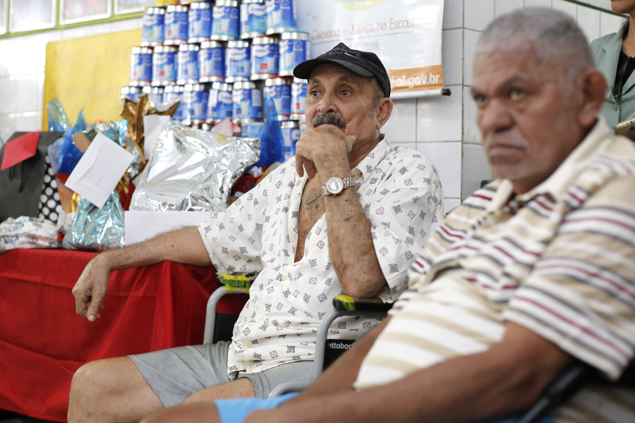 Contente por receber os estudantes no abrigo, o senhor Luiz Vieira Amaral, de 72 anos, escutou a leitura da carta, feita pelo jovem José Vitor de Araújo, de 15 anos, e aproveitou para jogar conversa fora. "É uma satisfação receber eles aqui. Nós gostamos bastante de receber visita e ter alguém para conversar", disse.