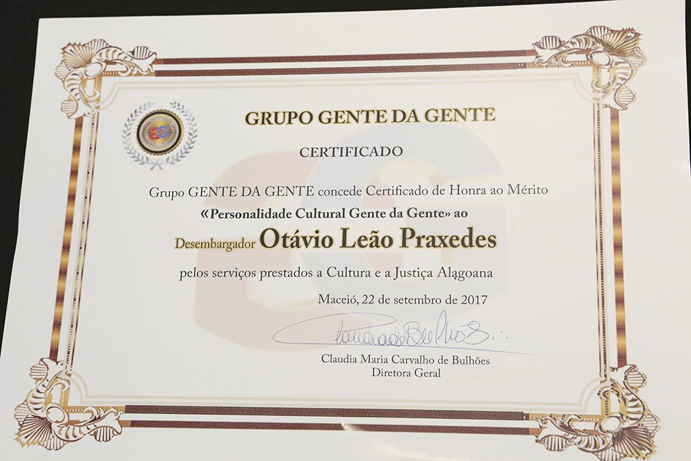 Segundo a diretora da Revista Cultural Gente da Gente, Cláudia de Bulhões, o desembargador Otávio Praxedes sempre foi ligado à cultura e que foi agraciado com a comenda que comemora o centenário de outro grande nome na cultura e na Justiça alagoana.