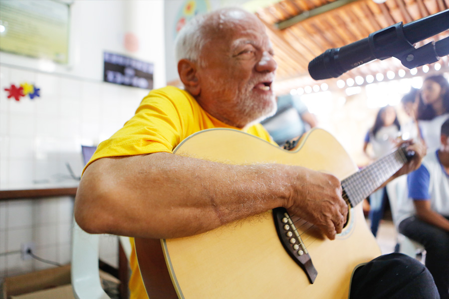 No encontro desta quarta, os idosos, alunos, professores e demais presentes puderam ainda prestigiar apresentação musical feita pelo mestre Cícero, que tocou e cantou músicas conhecidas e de sua autoria.