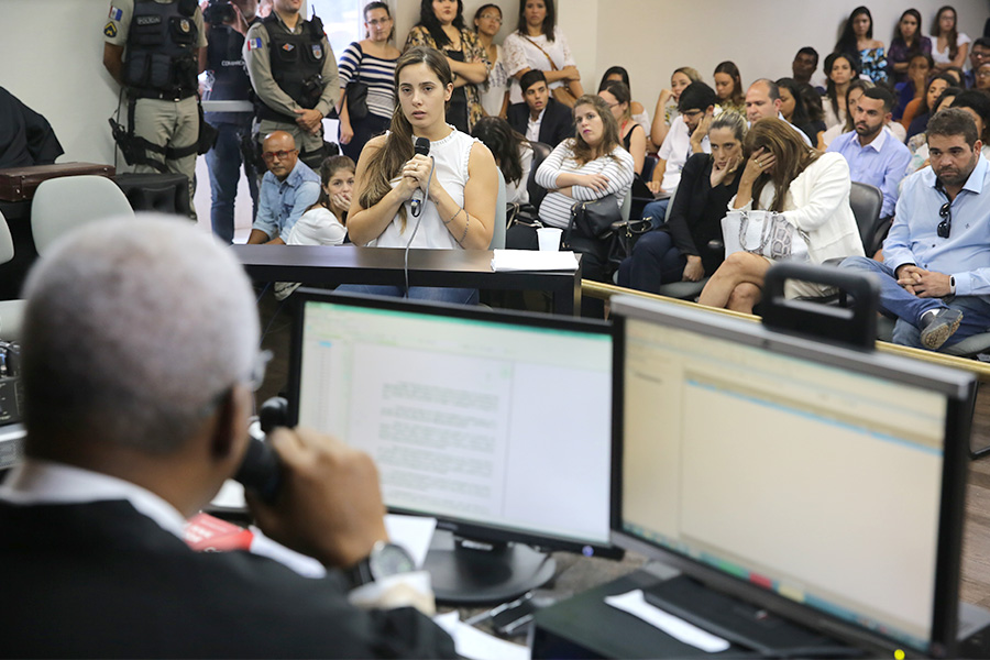 O magistrado John Silas da Silva, titular da unidade, preside a sessão. Ele estima que o julgamento poderá ser concluído ainda hoje, no período da noite. Pela manhã e no início da tarde, foram ouvidas três testemunhas e uma declarante, a irmã da vítima, Larissa Tenório, além da realização do interrogatório da ré. Após intervalo para almoço, serão iniciados os debates entre acusação e defesa.