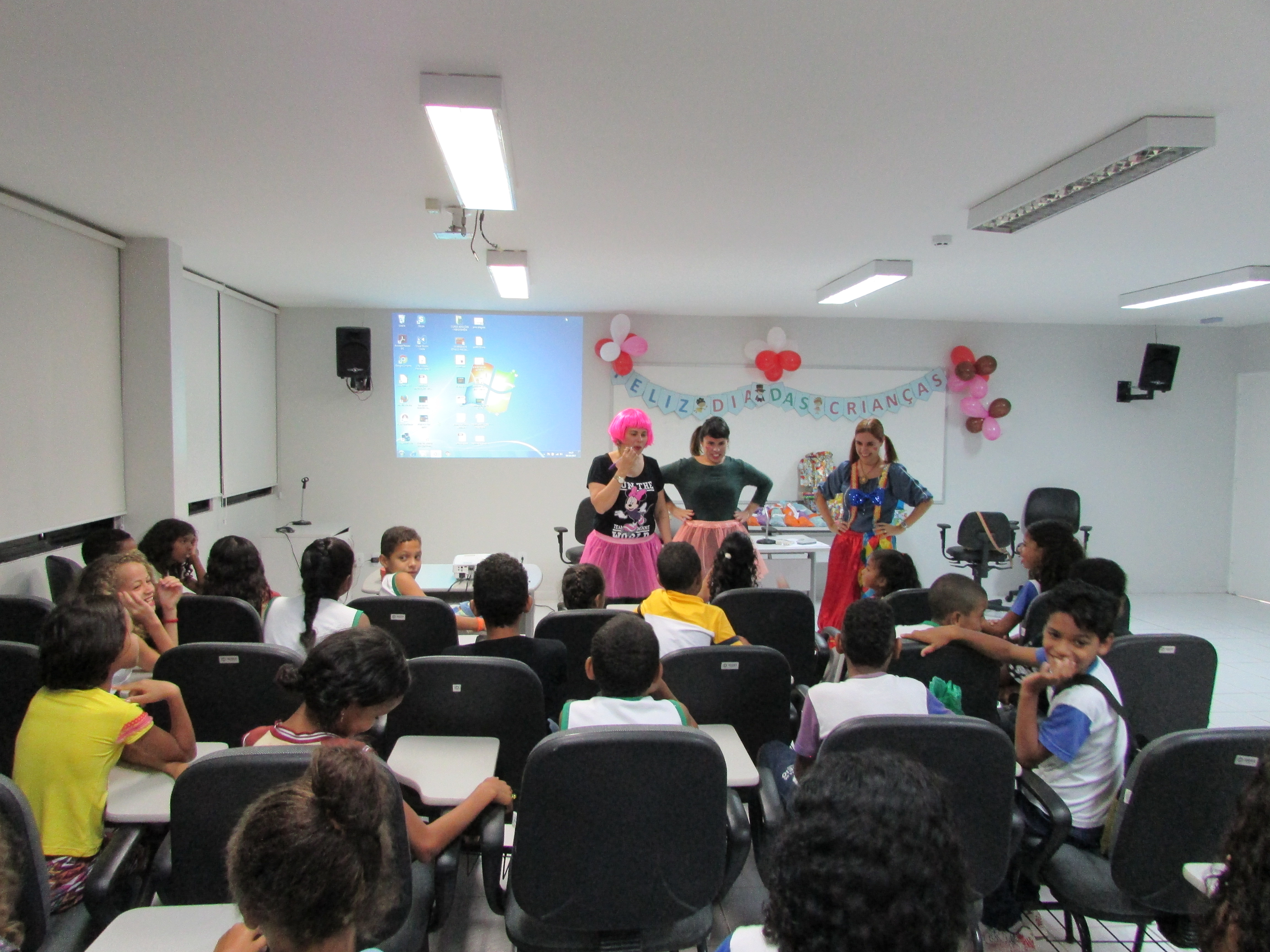 O Núcleo de Promoção da Filiação (NPF), em parceria com a Escola Superior da Magistratura de Alagoas (Esmal), promoveu atividades em alusão ao Dia das Crianças, na última segunda-feira (9). Trinta alunos da Escola Municipal Pedro Café participaram de brincadeiras e assistiram a um filme infantil na Esmal, no bairro do Farol.