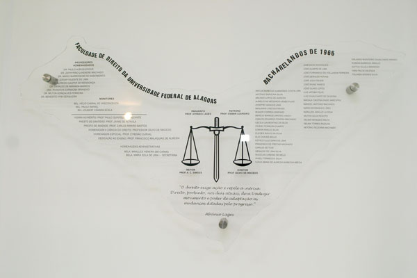 Outro momento marcou a solenidade na Escola Superior da Magistratura: a aposição da placa de formatura dos concluintes do curso de Direito da Faculdade de Direito de Alagoas ano de 1966. “Nossa placa havia se perdido junto com várias outras na Ordem dos Advogados do Brasil (OAB/AL) e agora estamos deixando marcada, aqui na Esmal, a nossa história”, afirmou em nome dos demais formandos Ivânia Brêda, uma das concluintes. Os desembargadores José Fernandes de Hollanda Ferreira, presidente do TJ/AL, Mário Casado Ramalho, vice-presidente, Estácio Luiz Gama de Lima, presidente do Tribunal Regional Eleitoral (TRE), Nelma Torres Padilha e Antônio Sapucaia da Silva (desembargador aposentado) também são membros da turma homenageada.