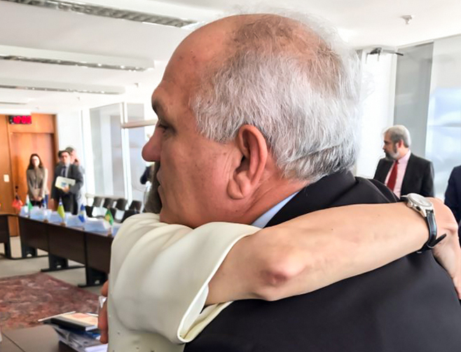 Desembargador Otávio Praxedes com ministra Cármen Lúcia, nesta segunda (4), em Brasília.