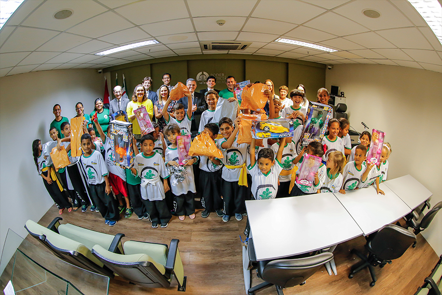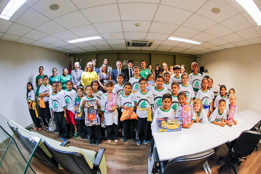 Crianças inseridas em projeto social recebem presentes de Natal em solenidade no TJ