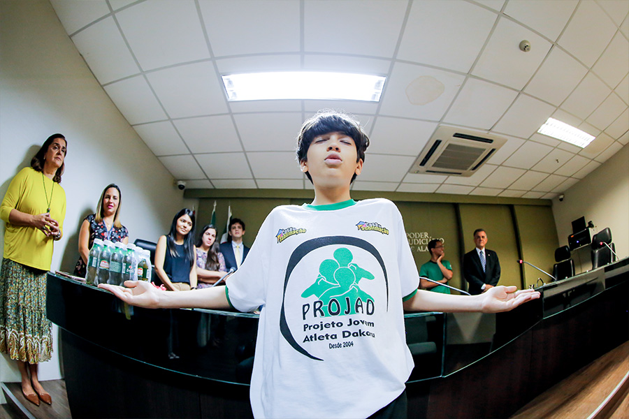“Sou muito grato pela oportunidade que tive no projeto. Agradeço também pelo apoio de todos vocês aqui no Tribunal de Justiça”, comentou o estudante, professor de Kung Fu e de inglês no projeto Dakaru.