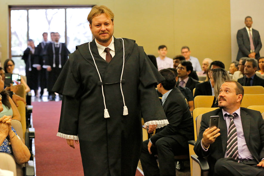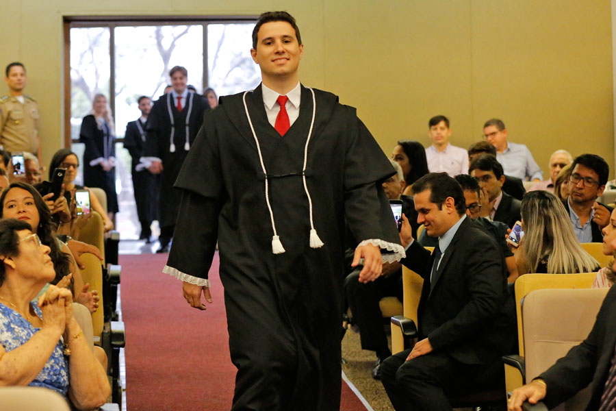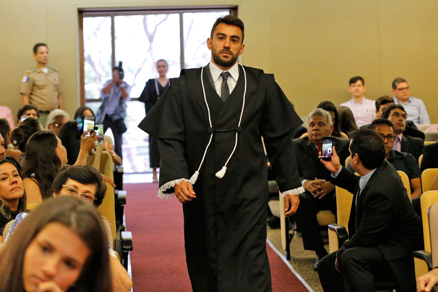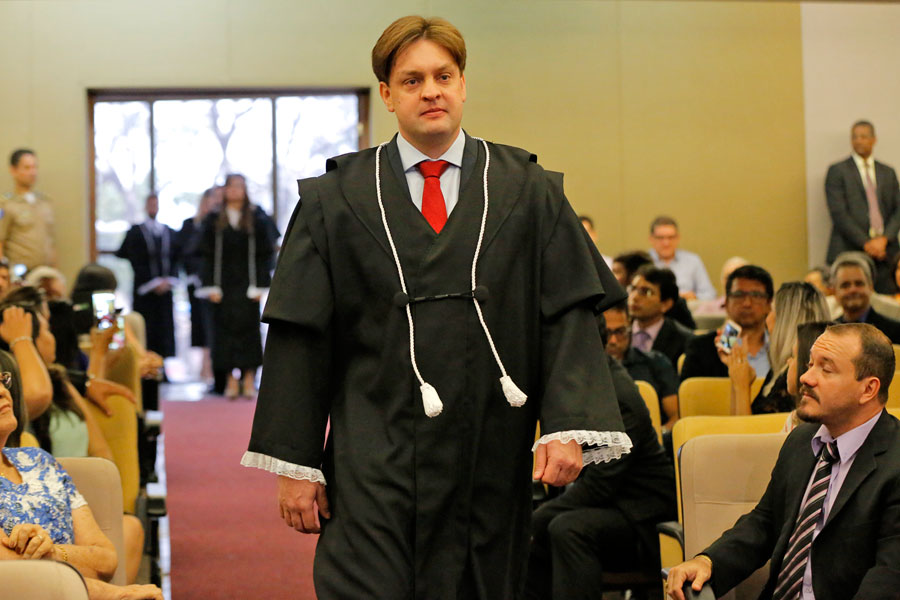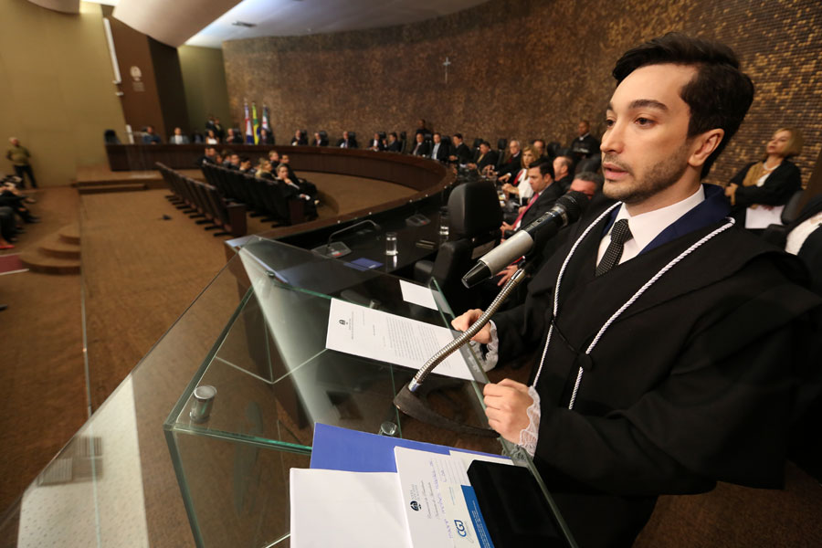 Novo magistrado Thiago Morais discursou em nome de todos os empossados. Foto: Caio Loureiro