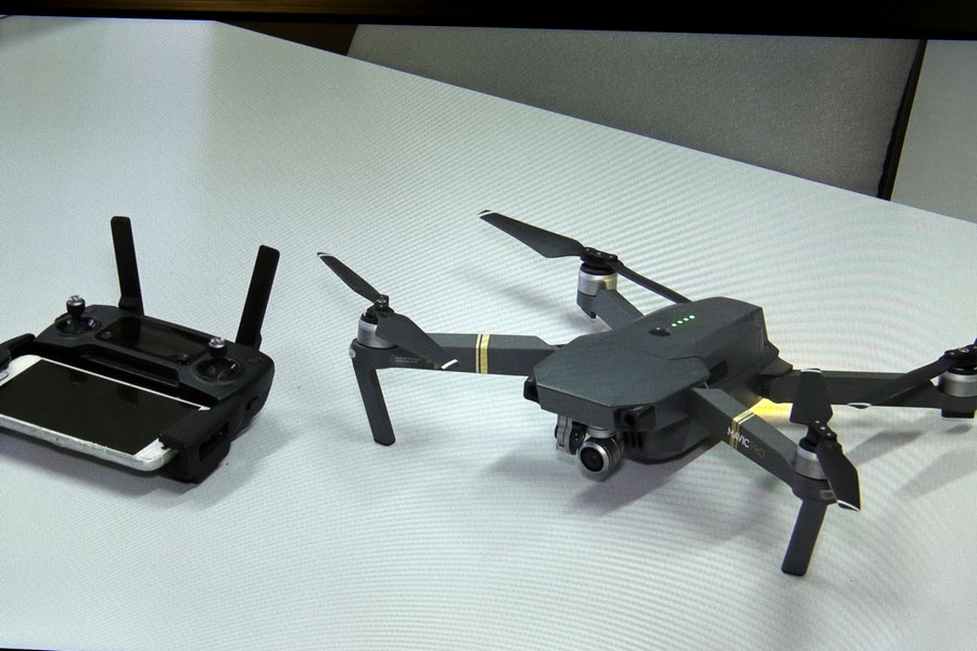 Juiz José Eduardo Nobre Carlos entregou o drone ao tenente Luã, do 6º BPM. Foto: Caio Loureiro.