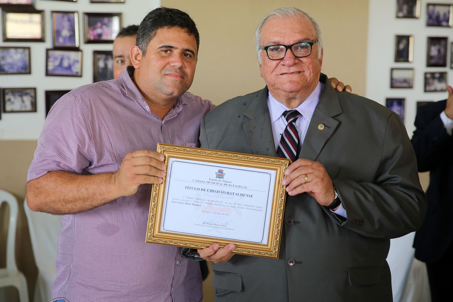 O desembargador José Carlos Malta Marques, do Tribunal de Justiça de Alagoas (TJAL), recebeu o título de cidadão honorário do Município de Batalha, nesta sexta-feira (18). O magistrado tem a gratidão da cidade sertaneja especialmente por ter empenhado esforços para a construção do Fórum de Batalha, concluída no final de 2014, quando era presidente do TJAL.