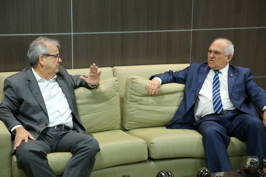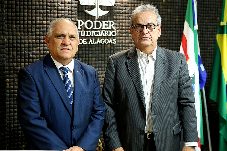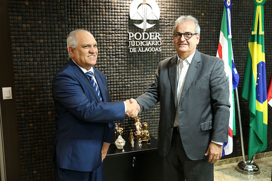O presidente do Tribunal de Justiça de Alagoas (TJAL), Otávio Leão Praxedes, recebeu o conselheiro Otávio Lessa, do Tribunal de Contas do Estado (TCE), nesta quarta-feira (30), no gabinete da Presidência.