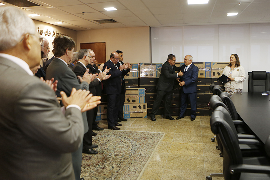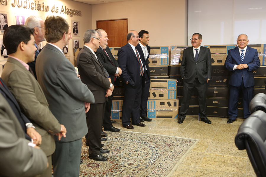 O Tribunal de Justiça de Alagoas recebeu, nesta quarta-feira (30), 45 computadores doados pelo Superior Tribunal de Justiça (STJ). Os equipamentos foram entregues pelo ministro Humberto Martins, vice-presidente do STJ, ao presidente Otávio Praxedes, que destacou que a iniciativa reforçará as estruturas de trabalho e trará mais celeridade à prestação jurisdicional em Alagoas.