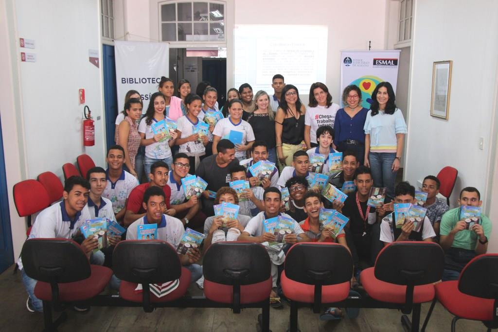 O Programa Cidadania e Justiça na Escola (PCJE) levou cerca de 40 alunos da Escola Estadual Theonilo Gama, na manhã desta sexta-feira (8), para um passeio na Biblioteca Estadual Graciliano Ramos. Na oportunidade, os jovens também participaram de uma palestra intitulada ‘Criança não se desenvolve trabalhando. Criança se desenvolve estudando e brincando’, foi ministrada pela procuradora do Trabalho Virgínia Ferreira.