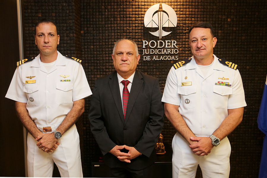 O presidente do Tribunal de Justiça de Alagoas, Otávio Leão Praxedes, recebeu os capitães de fragata da Marinha Mário Márcio Cardoso Teixeira e Haron Jorge Alves Cavalcante, nesta segunda-feira (16). Na ocasião, o desembargador foi convidado para a cerimônia de transmissão do cargo de capitão dos Portos de Alagoas.