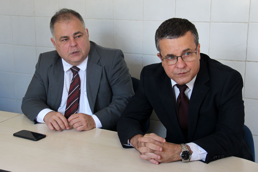 Juízes Cláudio José Gomes e José Miranda discutiram a implantação do Cejusc na base comunitária do Vergel. Foto: Caio Loureiro.