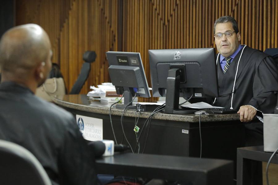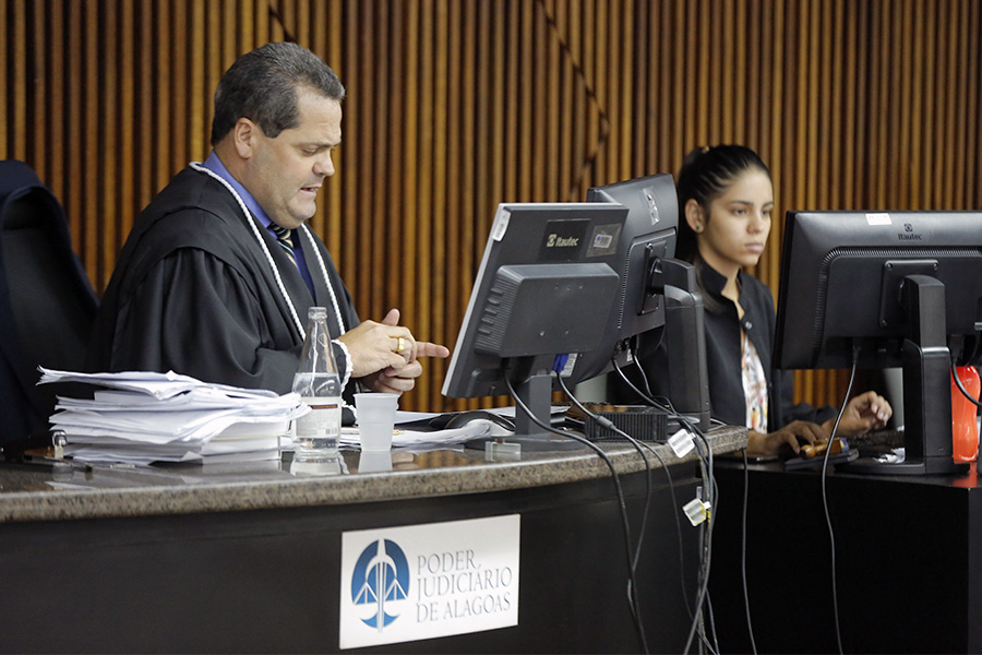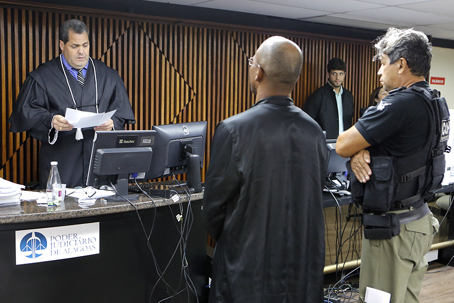 Juiz Sóstenes Alex lê a sentença para o réu, condenado a 15 anos de reclusão. Foto: Itawi Albuquerque