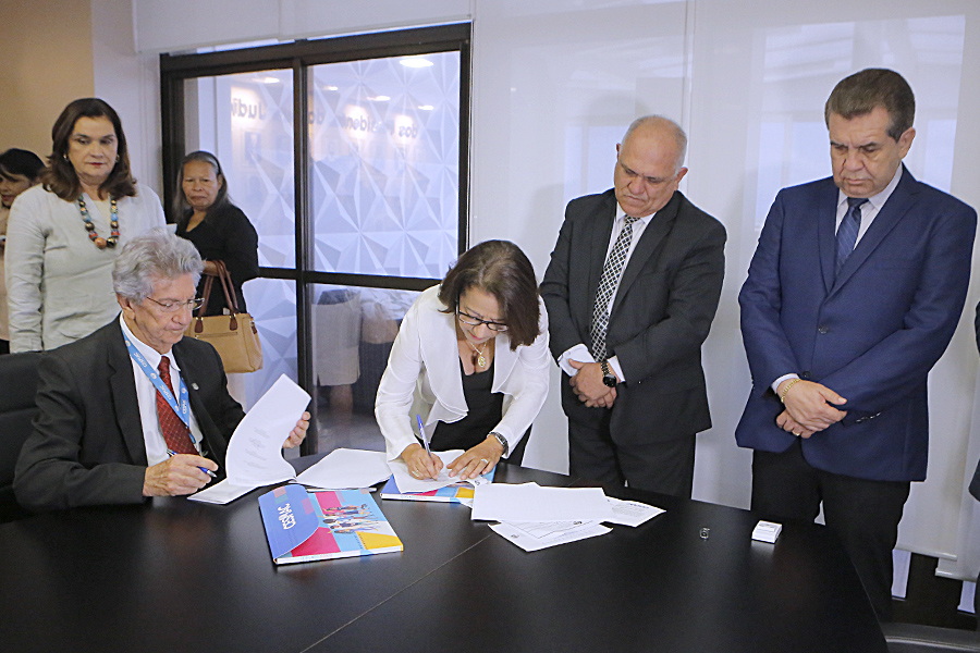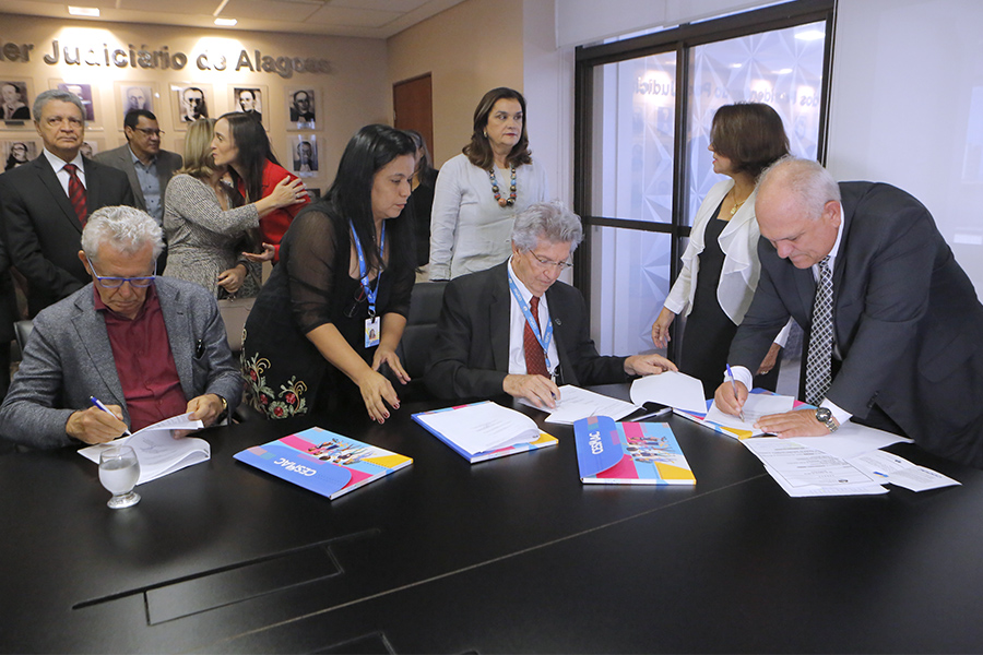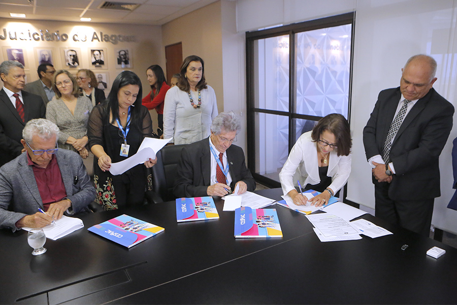 O presidente do Tribunal de Justiça de Alagoas (TJAL), Otávio Leão Praxedes, assinou termo de cooperação técnica com o reitor do Centro Universiário Cesmac, João Rodrigues Sampaio Filho, para que a instituição educacional preste atendimento médico e psicológico aos cerca de 80 menores abrigados em casas de adoção.