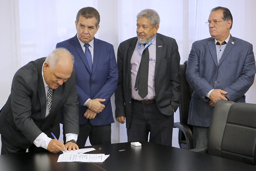 Reitor João Sampaio e presidente Otávio Praxedes assinam termo de cooperação. Foto: Itawi Albuquerque.
