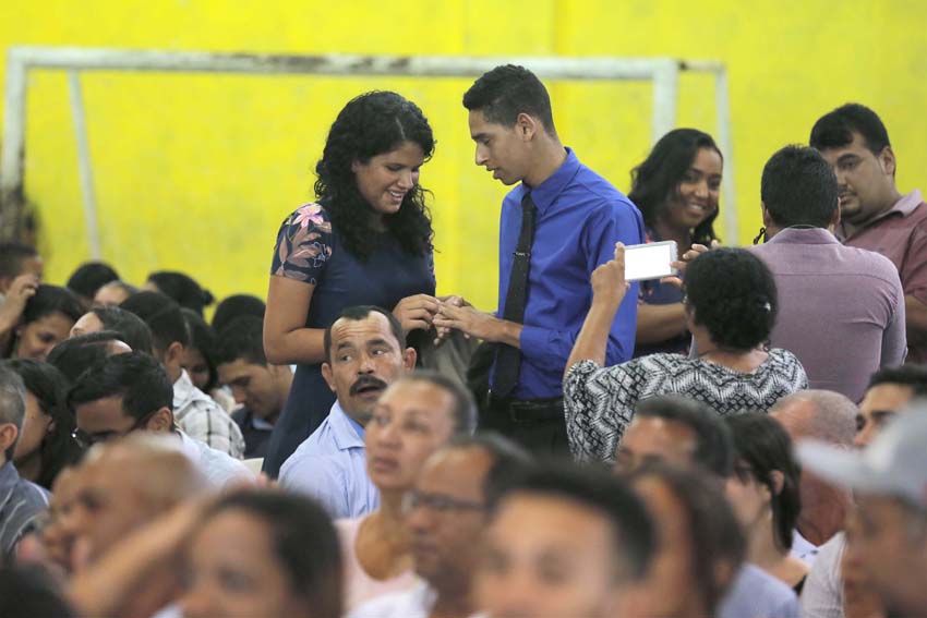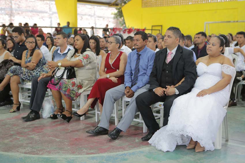 133 casais oficializaram a união através do casamento coletivo solicitado pela Igreja Assembleia de Deus – Ministério de Madureira. A cerimônia, promovida pela Justiça Itinerante, foi aberta e ocorreu na tarde desta segunda-feira (10) na Escola Estadual Benedita de Castro Lima, localizada no Clima Bom.