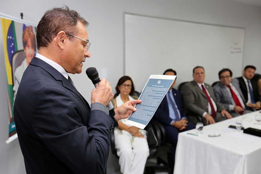 Juiz Claudemiro Avelino de Souza leu poema em homenagem à desembargadora Nelma Padilha. Foto: Caio Loureiro